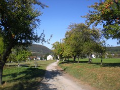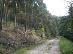 Einer der reizvollsten Wege führt rund um Mönchberg bis zum Ortsteil Schmachtenberg, jeweils mit Blick auf den Kirchturm der schönen Barockkirche St. Johannes der Täufer. Zur Rast bietet sich hier das Landgasthaus "Zur Sonne" mit eigener Traditionsmetzgerei und Schlachtung. Dort bekommt man einen reichhaltigen Spessart-Vesperteller mit Hausmacher Wurst, Käse und dazu, der aus Äpfeln der eigenen Streuobstwiesen, selbstgekelterte Apfelwein. Aber es gibt noch viele andere reizvolle Wander- und Ausflugsziele wie z.B. der Landgasthof "Waldfrieden" in Wildensee. Und essen kann man in allen Gasthöfen dieser Region gut. Zum Beispiel einen saftigen Schweinebraten mit hausgemachten Knödeln oder frische Forellen aus den Spessartbächen. Eine Spezialität dieser Gegend sind aber Wildgerichte. Dazu trinkt man natürlich Frankenwein. Hier im Mainviereck wachsen ja einige hervorragende Lagen wie der Großheubacher Bischofsberg, der Klingenberger Spätburgunder und der Erlenbacher Sonnenhügel. Aufsteigen und Rad fahren, die Fahrt und die einmalige Ausstrahlung der Spessartpfade und Landschaft genießen und sich erholen. Auf gehts! Anschließend automatische Slidershow nach 3 Sekunden. stop |