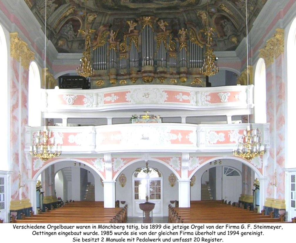 Verschiedene Orgelbauer waren in Mönchberg tätig, bis 1899 die jetzige Orgel von der Firma