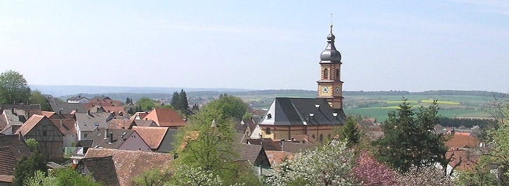 der das Ortsbild beherrschenden Pfarrkirche St. Johannes der Täufer. Sie steht