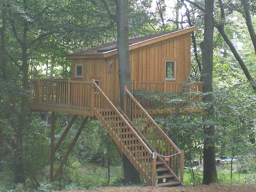 Die Wipfelglück Baumhäuser sind für bis zu zwei und für bis zu vier Personen ausgelegt. Sie sind etwa fünf Meter hoch über dem Boden aufgestellt und sowohl am Baum, als auch im Boden verankert.