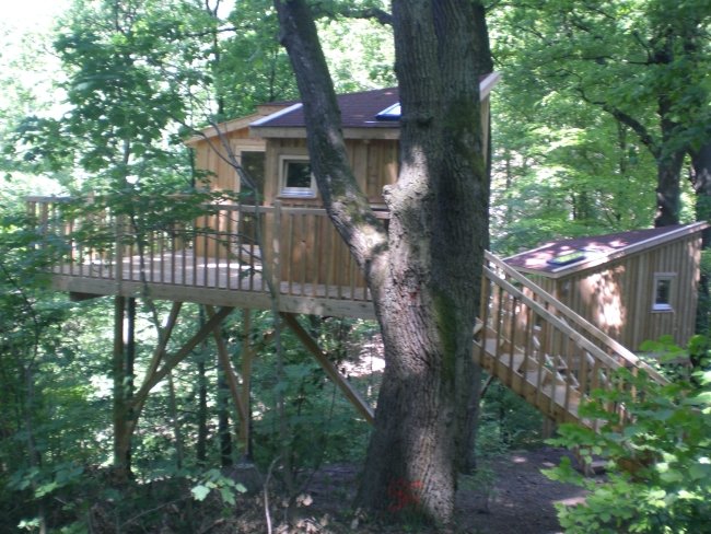 Die Fertigung der Baumhäuser aus Holz (außen Lärche, innen Fichte) dient ihrer Langlebigkeit und nicht zuletzt der optischen Anpassung an ihre natürliche Umgebung. Jedes Baumhaus hat eine Grundfläche von 25 Quadratmetern, so wie jeweils zwei Dachfenster, Wandfenster und eine Zugangstür, die über einen großzügigen Balkon in das Haus führt. Der Balkon mit Geländer und das Haus sind über eine Außentreppe zugänglich. Die Hotelanlagen erscheinen gastfreundlich und familiär. Neben den einzelnen Baumhäusern sind auch gemeinschaftlich nutzbare Einrichtungen vorhanden, die je nach Standortbegebenheiten variieren. Die Hotelanlagen sind frei zugänglich gehalten, es gibt keine Einzäunung. ![]()