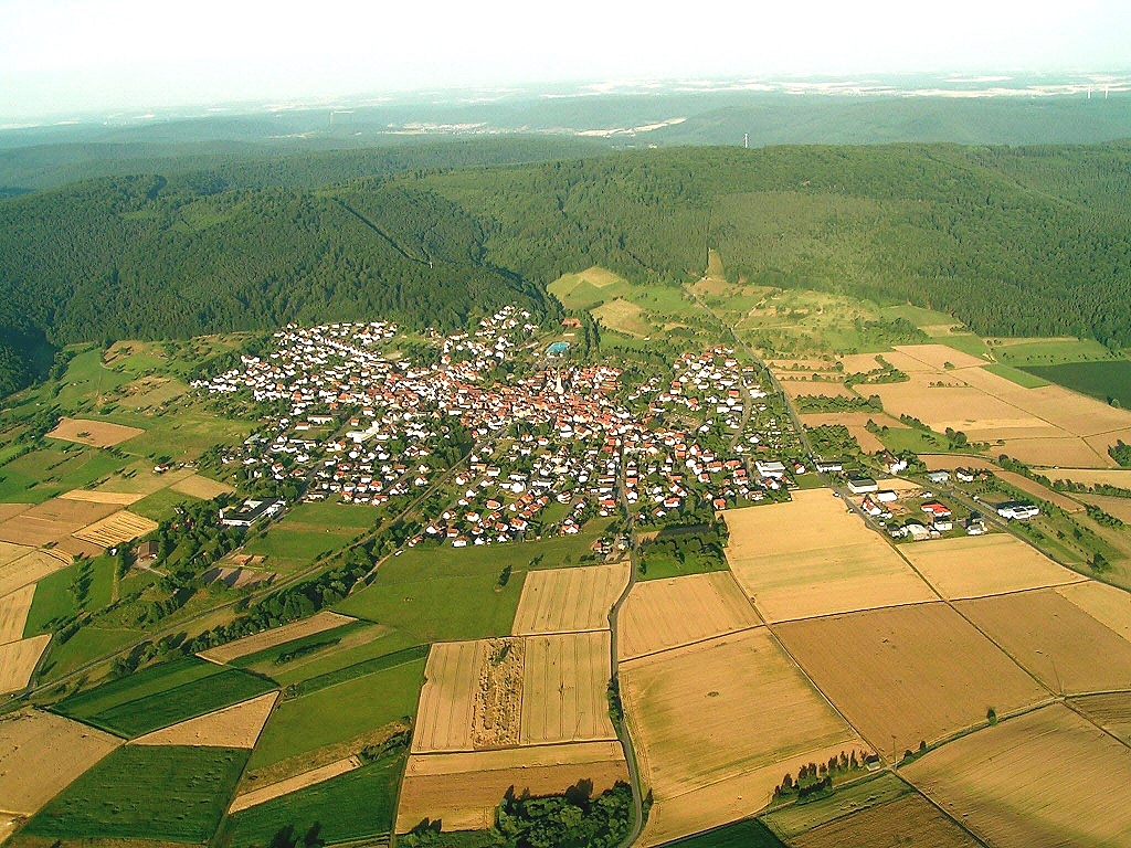 Der Spessart von oben aus gesehen Fotos speziell von Mönchberg, Schmachtenberg u. "Wochenendgebiet" sowie das gut erkennbare bekannte Spessartbad.