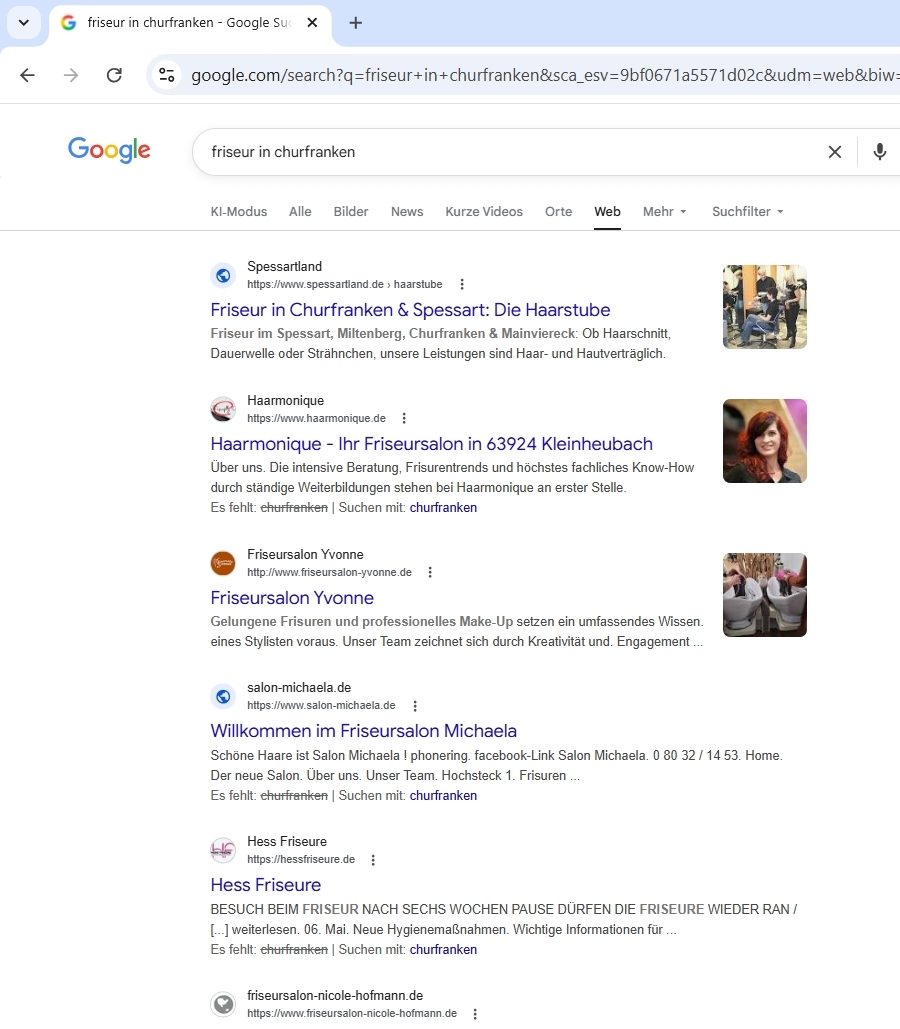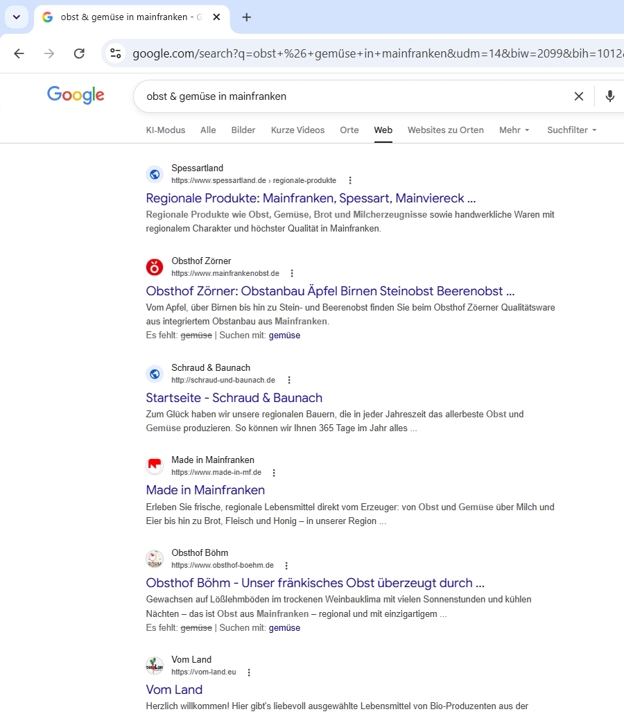 obst & gemüse im spessart" oder statt "spessart" in "Mainfranken" was im Ergebnis Platz-1 ergibt.
