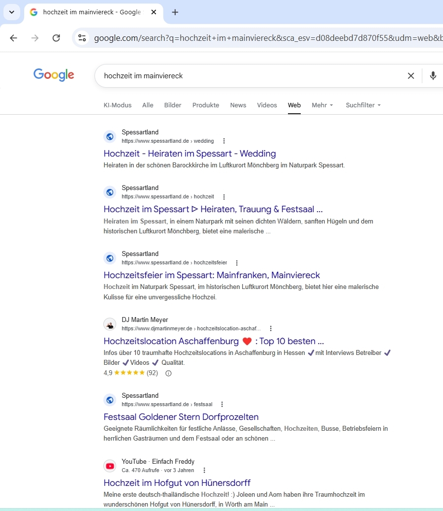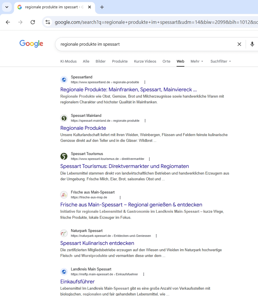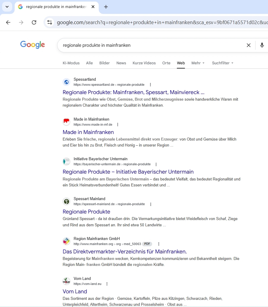 „regionale Produkte in Spesssat" und sogar regionale Produkte in mainfranken“ sucht, landet seit über einem Jahr unangefochten auf
