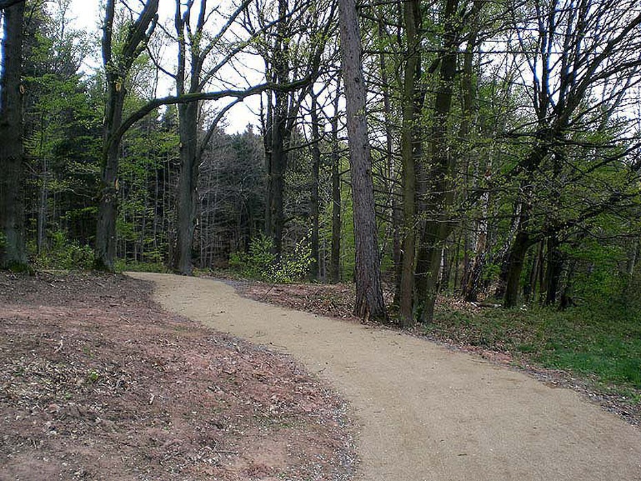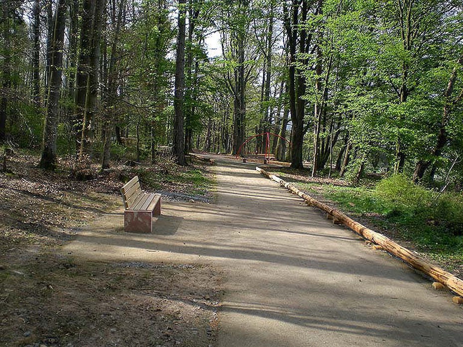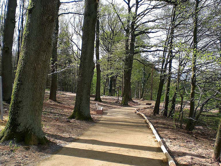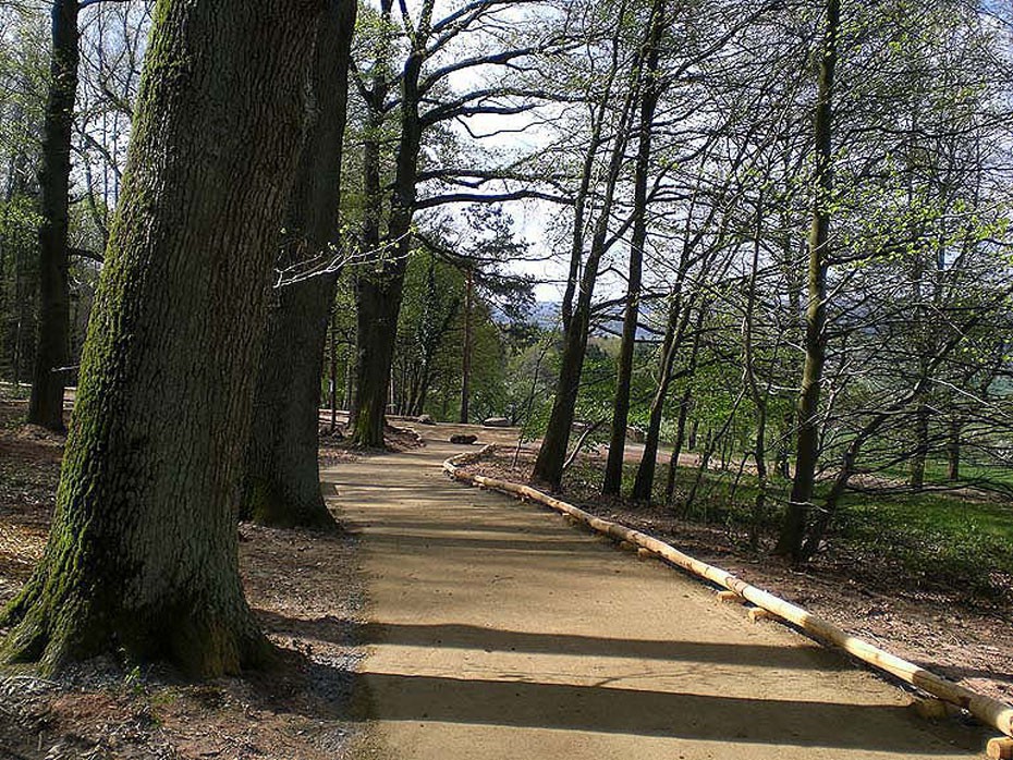 Der mit dem Eichhörnchen ausgeschilderte behindertenfreundliche Rundwanderweg ist ca. zwei Meter breit und aufgrund seiner Bodenbeschaffenheit grundsätzlich für Rollstuhlfahrer geeignet.  Am Startpunkt ist eine Tafel mit Gesamtinformationen des Pfades aufgestellt und entlang der Strecke folgen noch drei Tafeln mit Teilinformationen. Der barrierefreie "Wald-Riesen-Erlebnispfad" bezieht sich auf das Thema "Balance und Leichtigkeit" mit einem  Aktionsfeld für Balancier-Spielen.