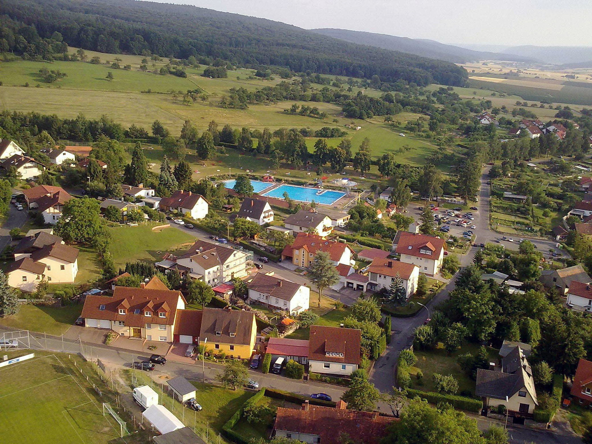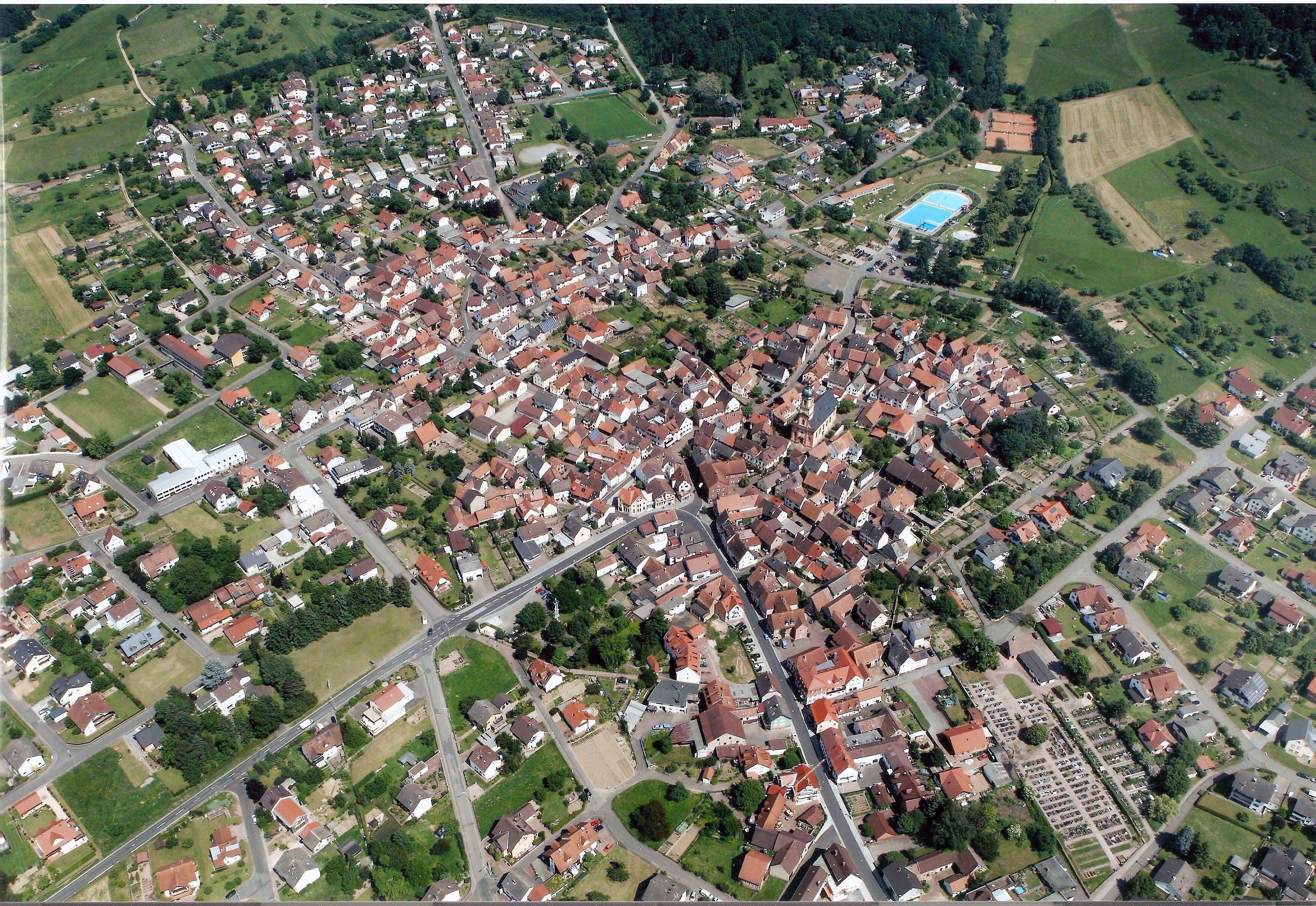 Der Spessart von oben aus gesehen - Fotos speziell vom Staatlich anerkannten Luftkurort Mönchberg mit dem gut erkennbaren bekannten Spessartbad.